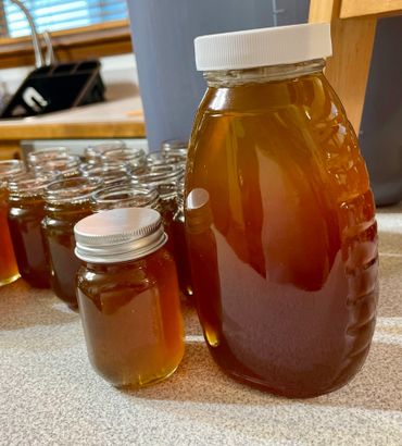 Top bar frame with naturally drawn comb filled with a mixture of honey, nectar, and pollen.